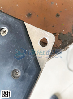 圖1、安裝孔位置已變形:因氣囊流量不夠并強行操作,使氣囊與地面大面積摩擦,使得外力過大,往相反的方向變形。