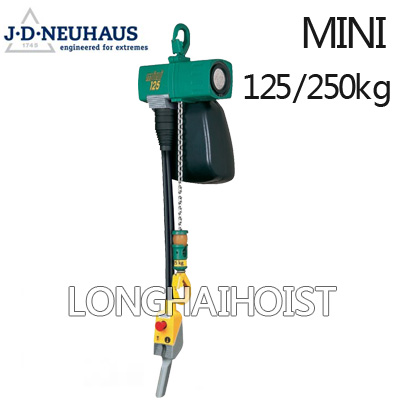 【產(chǎn)品特點(diǎn)】 ● 125~250kg迷你氣動(dòng)葫蘆即使是與使用其它驅(qū)動(dòng)介質(zhì)的提升機(jī)相比,也盡顯其經(jīng)濟(jì)性和靈活性; ● JDN迷你型氣動(dòng)葫蘆部件少,維護(hù)簡(jiǎn)便; ● 抗磨損電動(dòng)機(jī)制動(dòng)系統(tǒng); ● 德國(guó)JDN迷你型氣動(dòng)葫蘆重量輕,易于操縱; ● 125~250kg迷你氣動(dòng)葫蘆同樣適合于水平拖拉; ● mini系列氣動(dòng)葫蘆帶有緊急關(guān)閉閥的靈敏控制桿; ● 德國(guó)JDN迷你型氣動(dòng)葫蘆標(biāo)配鏈條箱,選配行走小車(chē)。 |