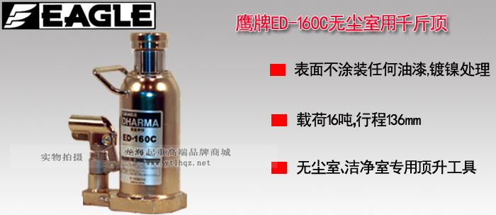 ED-160C無塵室液壓千斤頂介紹 【產(chǎn)品名稱】EAGLE JACK ED-160C無塵室液壓千斤頂 【產(chǎn)品品牌】日本EAGLE JACK 【產(chǎn)品規(guī)格】 【產(chǎn)品保質(zhì)】保質(zhì)期12個月 【是否定制】可按需定制 【產(chǎn)品目錄】無塵室液壓千斤頂 【典型應(yīng)用】專用應(yīng)用于潔凈室、制藥車間、食品車間、半導(dǎo)體車間、液晶面板制造、核電等無塵場合設(shè)計