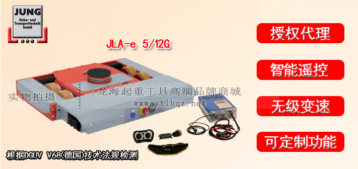 JLA-e5/12G電動搬運小坦克,為德國JUNG品牌JLA-e系列電動搬運車新增型號,單臺承載5噸,可增配后車、與K系列搬運車搭配使用。煙臺開發(fā)區(qū)龍海起重工具有限公司授權代理,鄭重承諾:廠家貨源,如有假貨以產品貨值百倍賠償!(代理文件可參考:德國JUNG品牌代理)